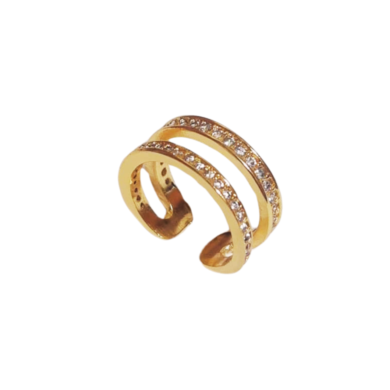 Anel Regulável Duplo Aparador com Zircônias Banhado a Ouro 18K