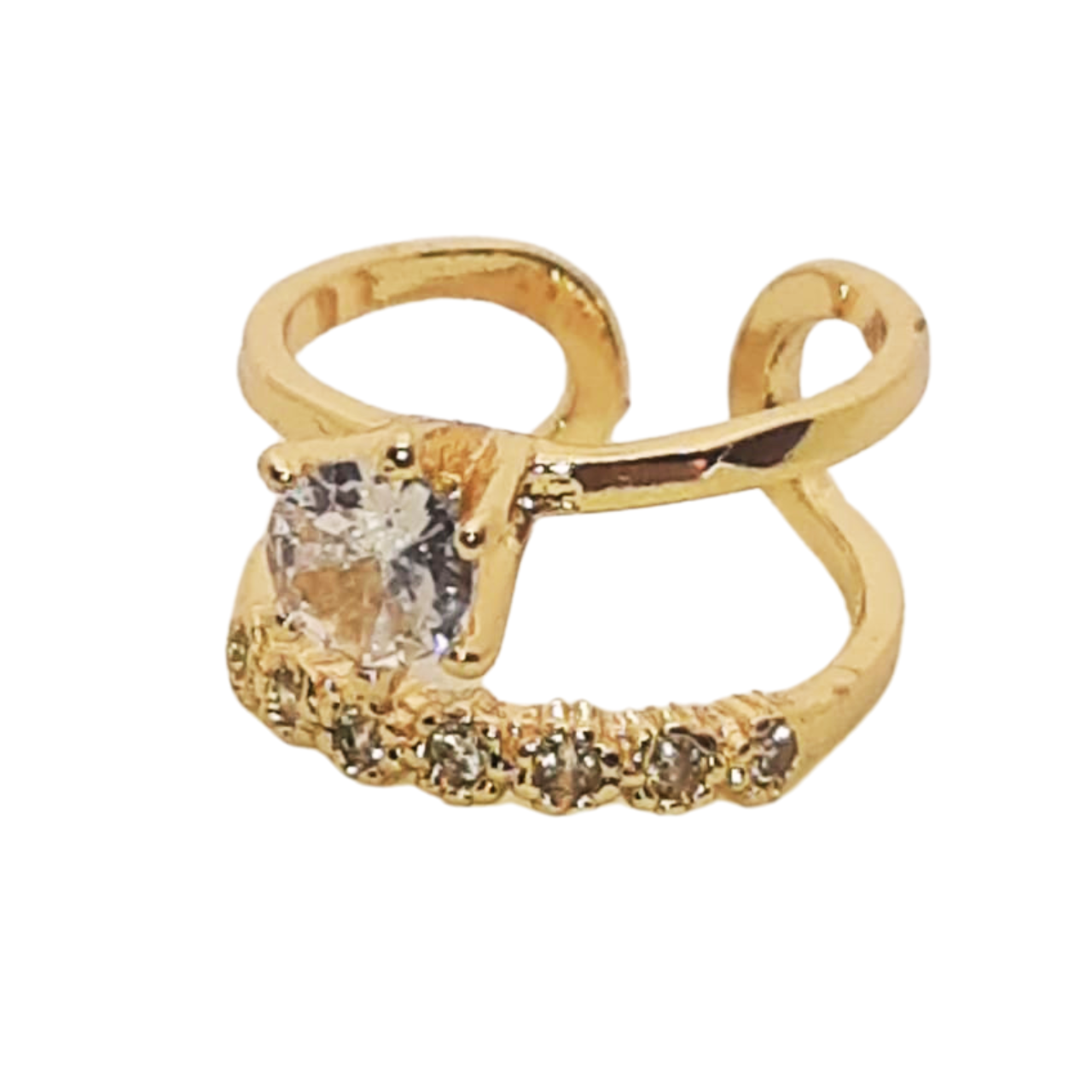 Anel Regulável Duplo com Solitário Zircônia Cristal Aparador com Zircônias Banhado a Ouro 18K