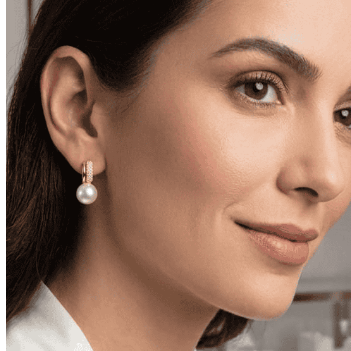 Brinco Argola Zircônia Pérola Meia Lua Banhado a Ouro 18K.