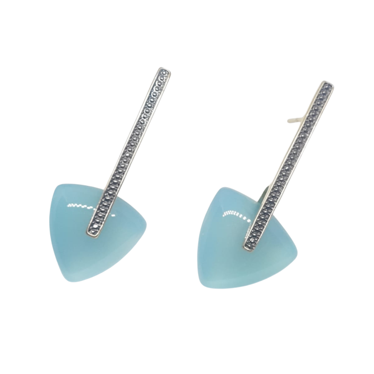 Pedra Ágata Azul em formato de triangulo tamanho 19x19mm