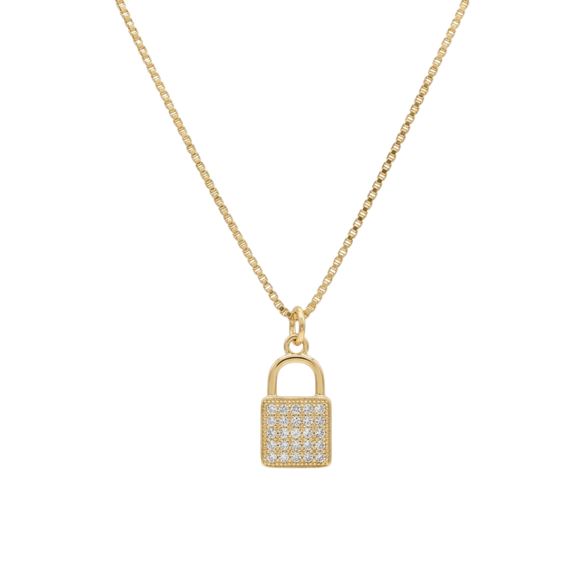 Conjunto Cadeado Corrente Veneziana Pingente Banho a Ouro 18K